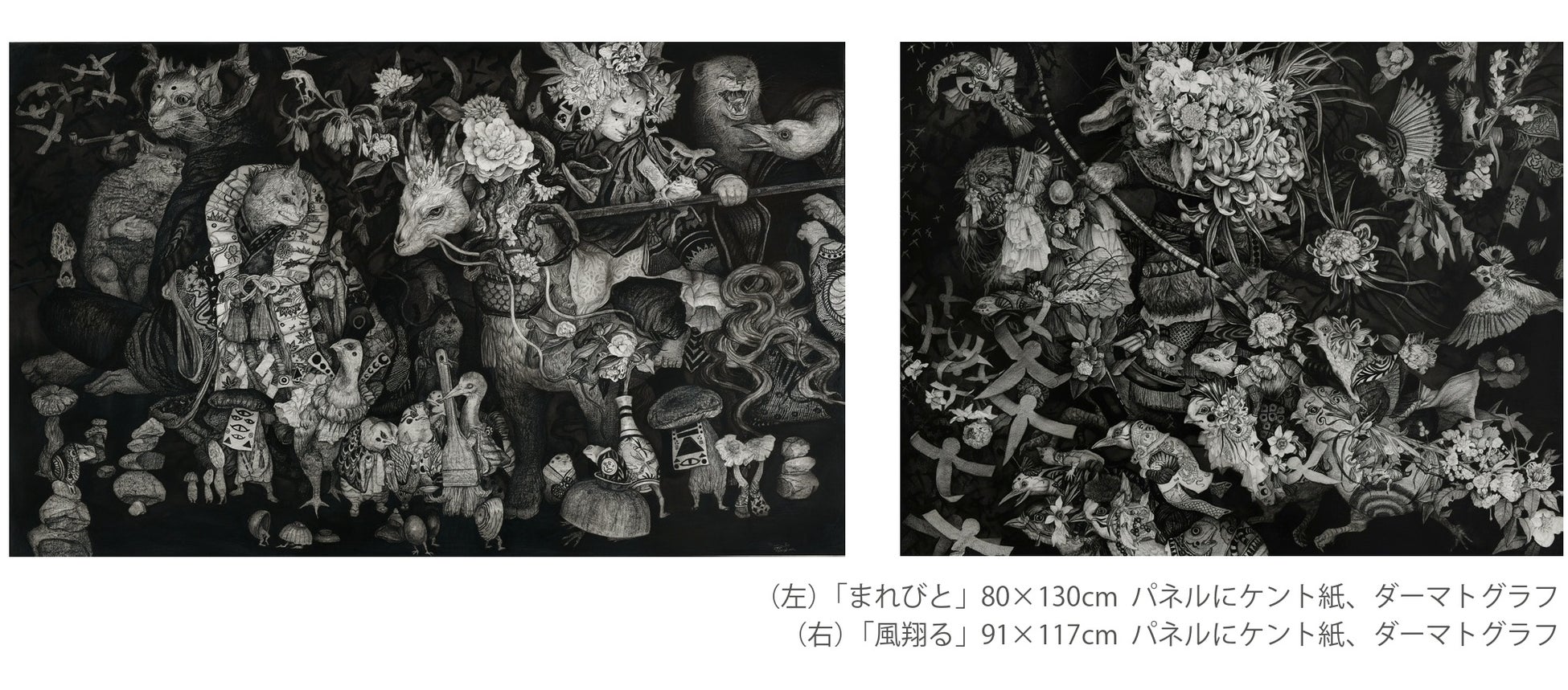 新作約40点を一堂に展覧いたします本展では、きっと黒の幻想世界へ迷い込んだかのように感じられることでしょう。北川の比類ない想像力と実力に裏付けされた緻密な描写力が生みだす作品をこの機会にぜひご堪能いただきたく、ご案内申し上げます。