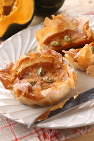 ■概要:キャラメル風味のかぼちゃ餡とスパイスクッキーをパータフィロで包んでいます。