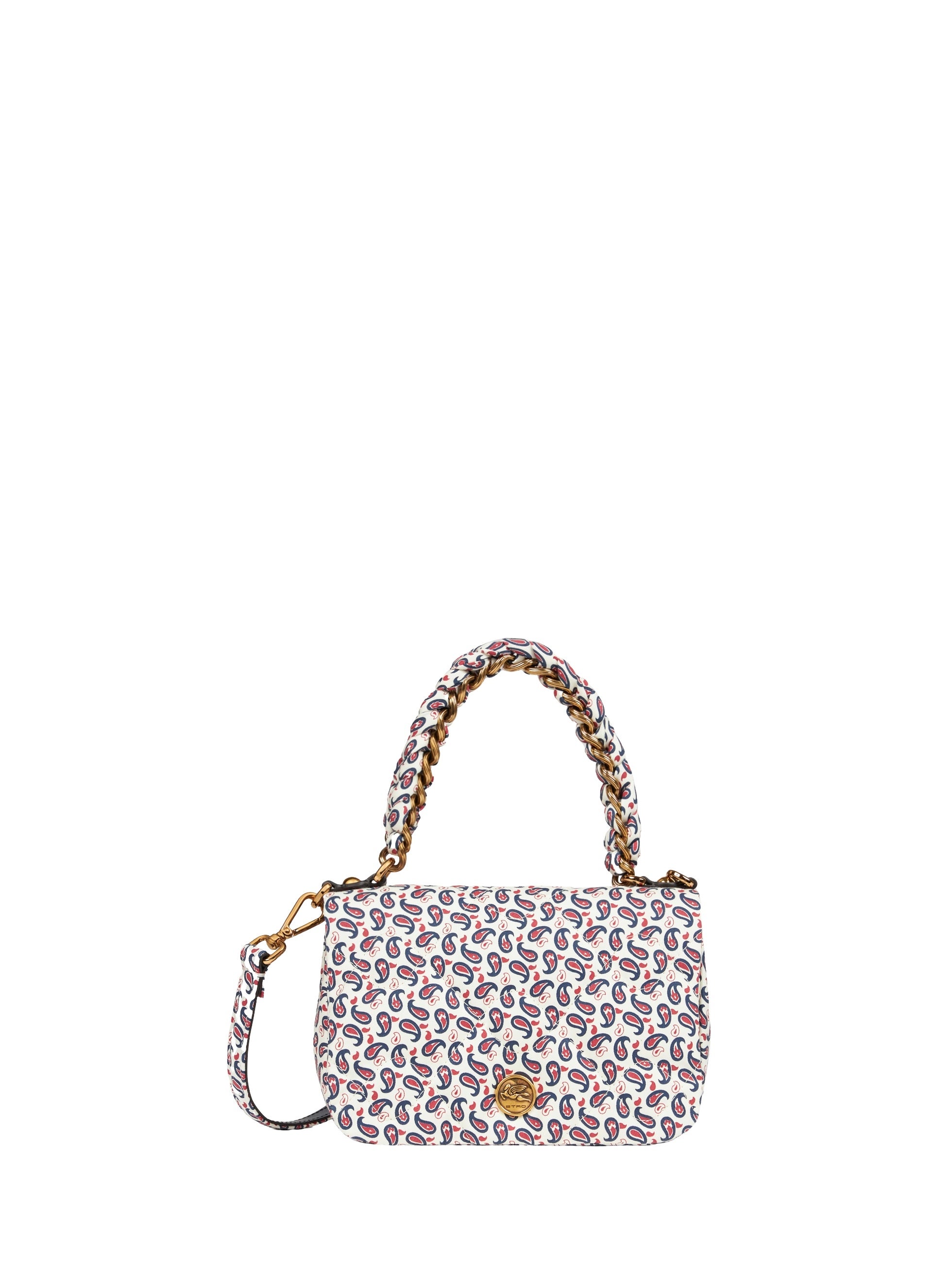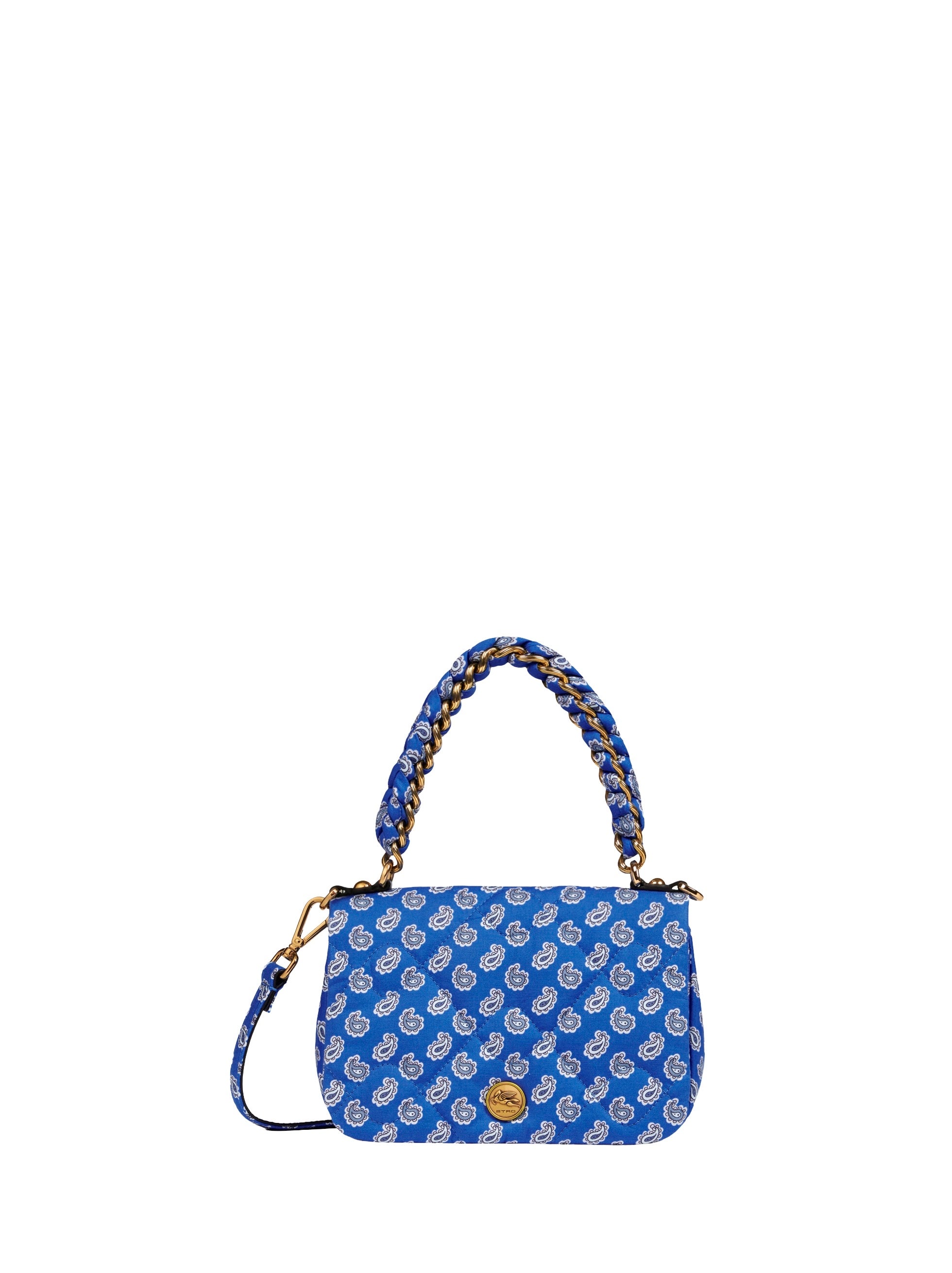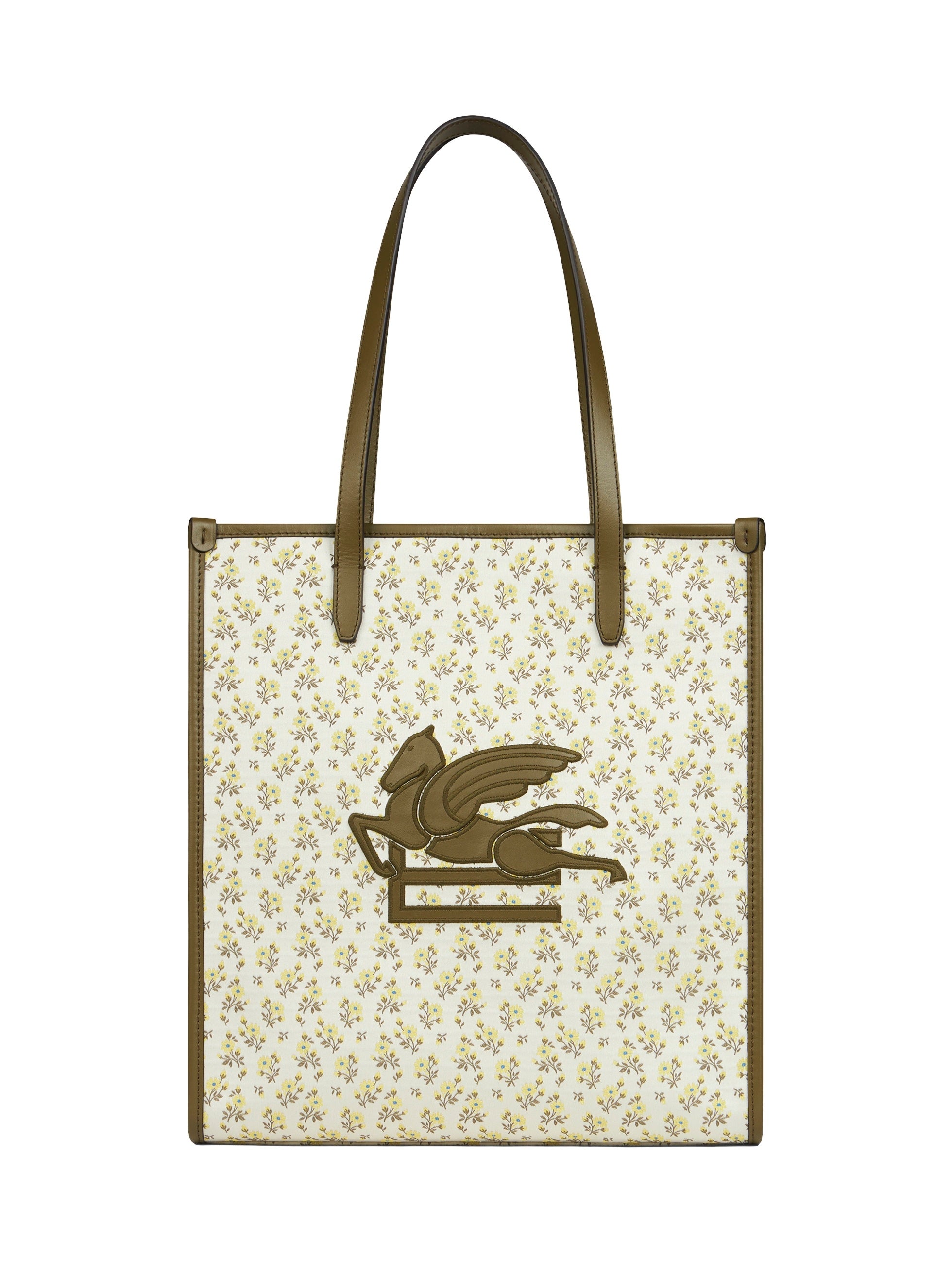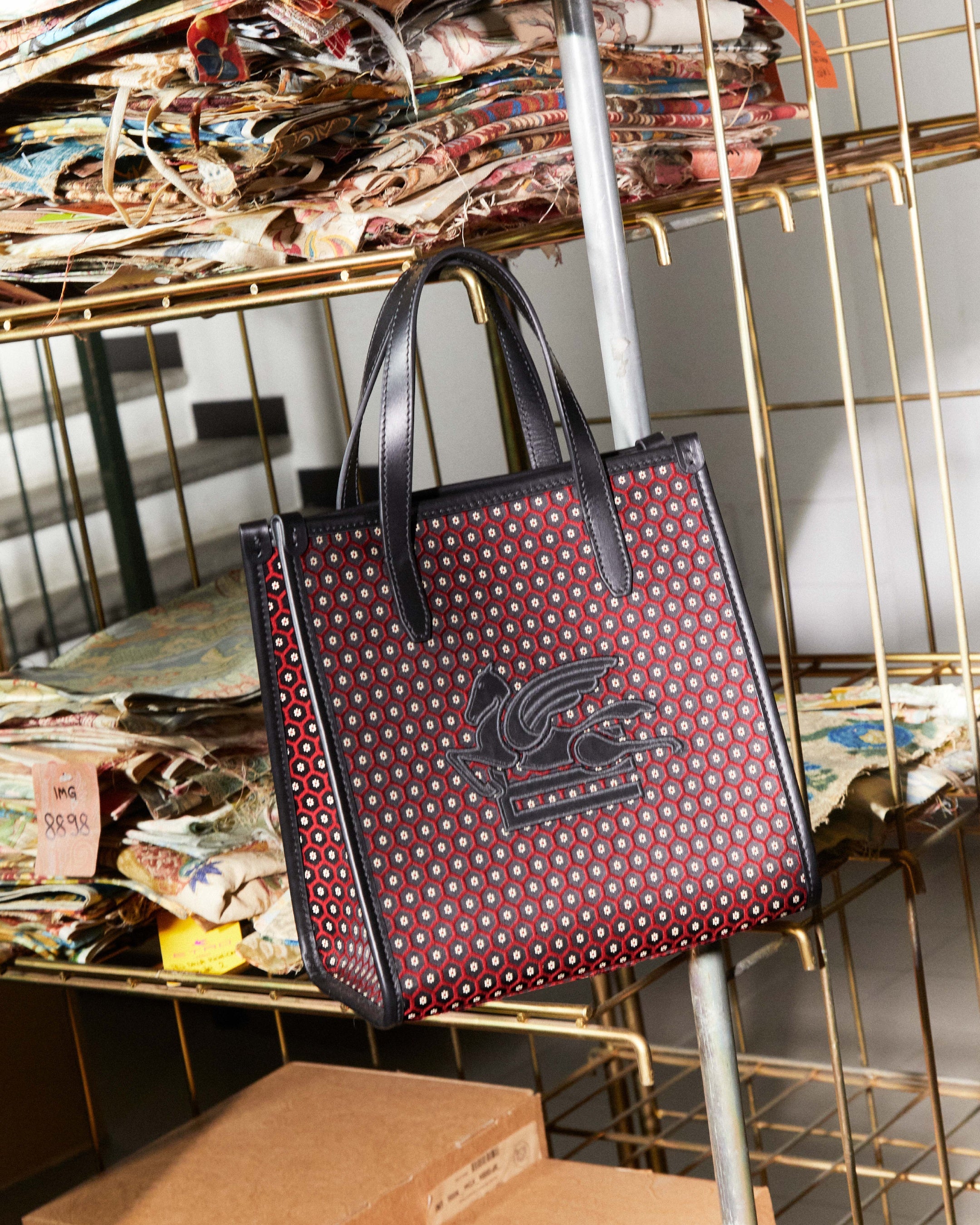 エトロのシンボルモチーフであるペガソの刺繍が特徴のラブトロッターは、繊細なフラワーモチーフをジャカード織で描いています。一方、エトロボンドは、柔らかなキルティングが作るシルエットに、ファブリックが編み込まれたチェーンストラップがアクセント。