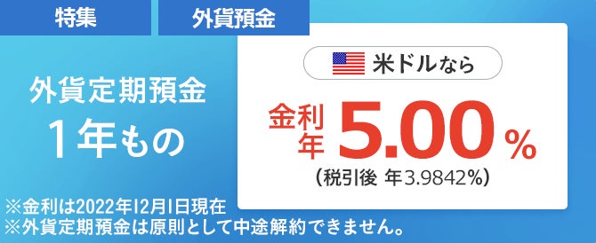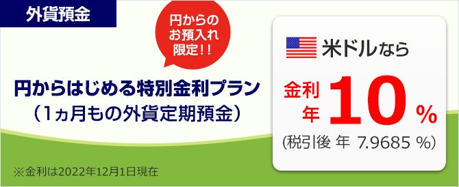 Ø 米ドル定期預金の1ヵ月もの(円からはじめる特別金利プラン) 詳しくはこちら