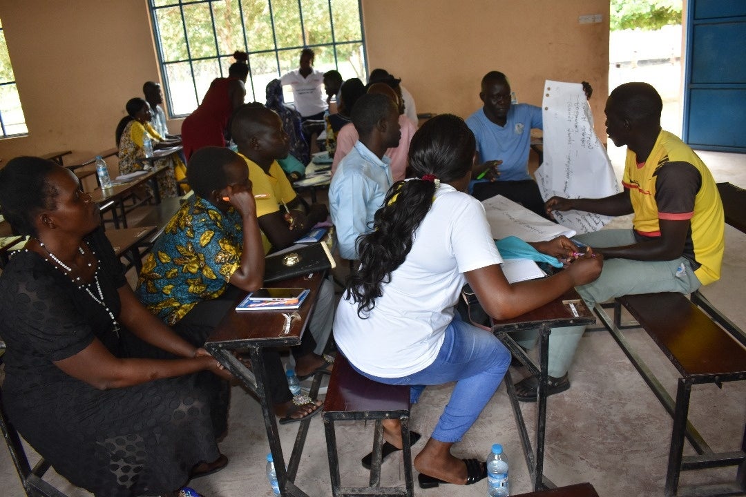 取り組みの一つとして、コミュニティを代表して平和構築活動の担い手となる女性・若者から構成される平和調停人(ピース・メディエイター)を選定し、問題が悪化する前に問題に応じた仲裁、調停含めた予防措置を取ることができる人材となるよう能力強化を図ります。例えば、争いや犯罪の発生源となりうる場所・環境を未然に特定するための方法や、それに対する解決手法を学びます。さらに女性・若者の平和構築参画プロセス、ジェンダー、民主化・選挙などもテーマとして活動の中で扱い、女性・若者が主体的となって果たすべき役割への理解を促します。