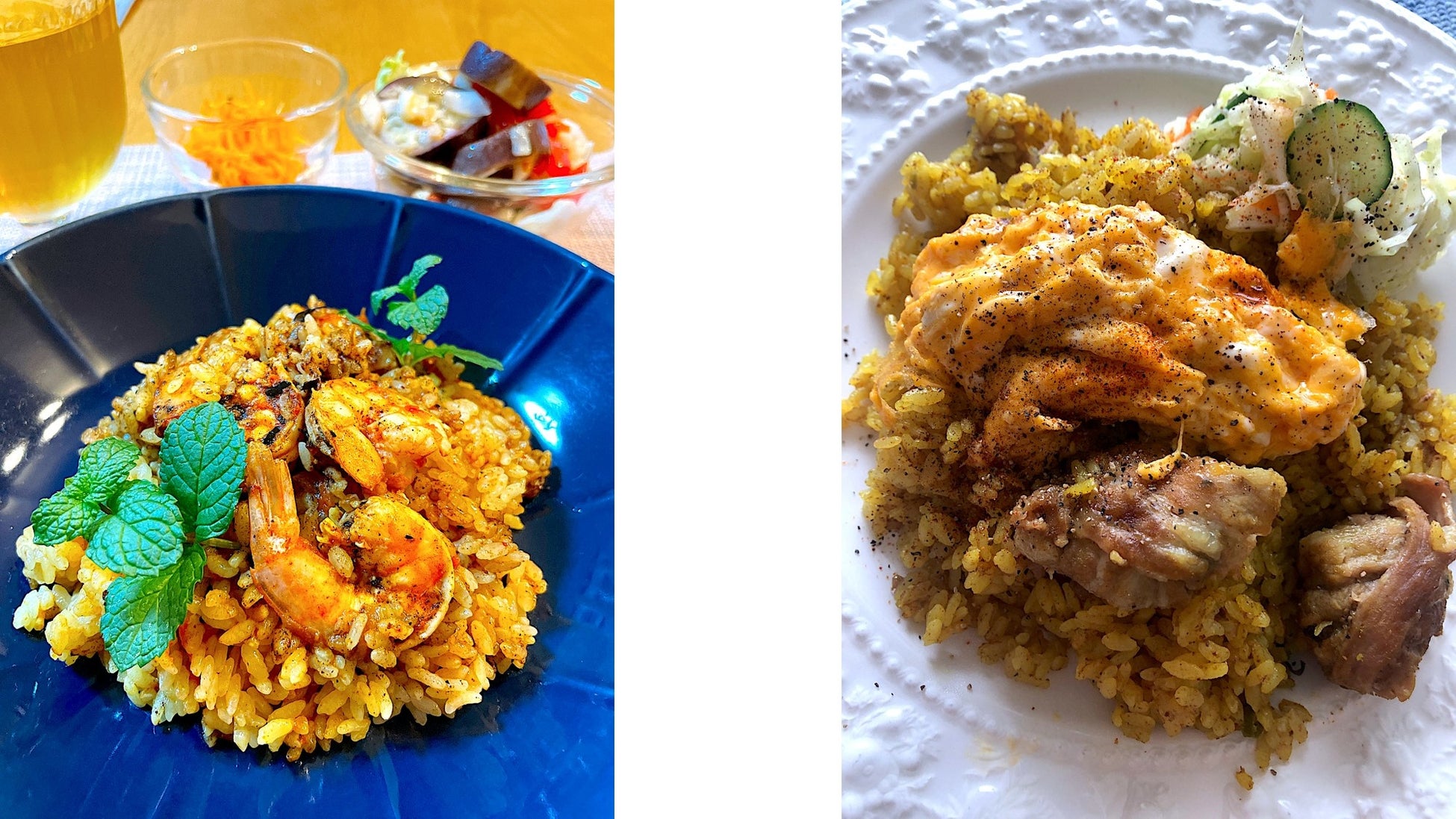 右:ビリヤニの元で炊飯器で簡単ビリヤニ(https://snapdish.co/d/PCKibaa)