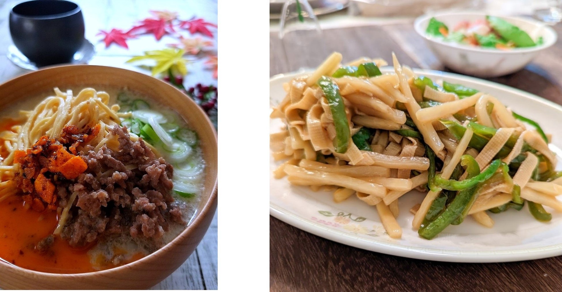 左:豆腐干の豆乳担々麺(https://snapdish.co/d/CezKSa)