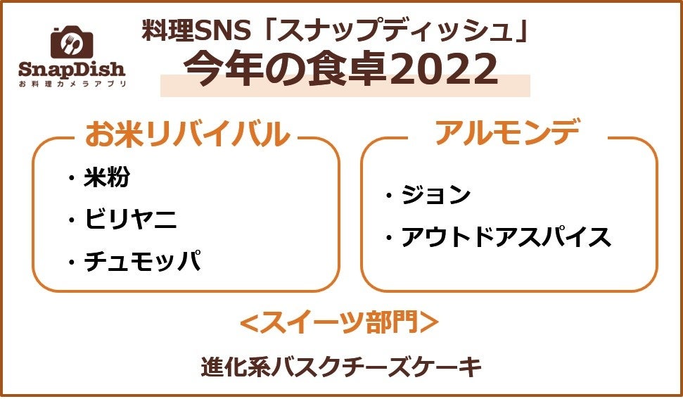 【「今年の食卓2022」は「お米リバイバル」と「アルモンデ」】値上げラッシュの1年、食卓はお米の魅力再発見と賢い節約料理がトレンドに/2,800万枚の料理写真SNS「スナップディッシュ」が発表