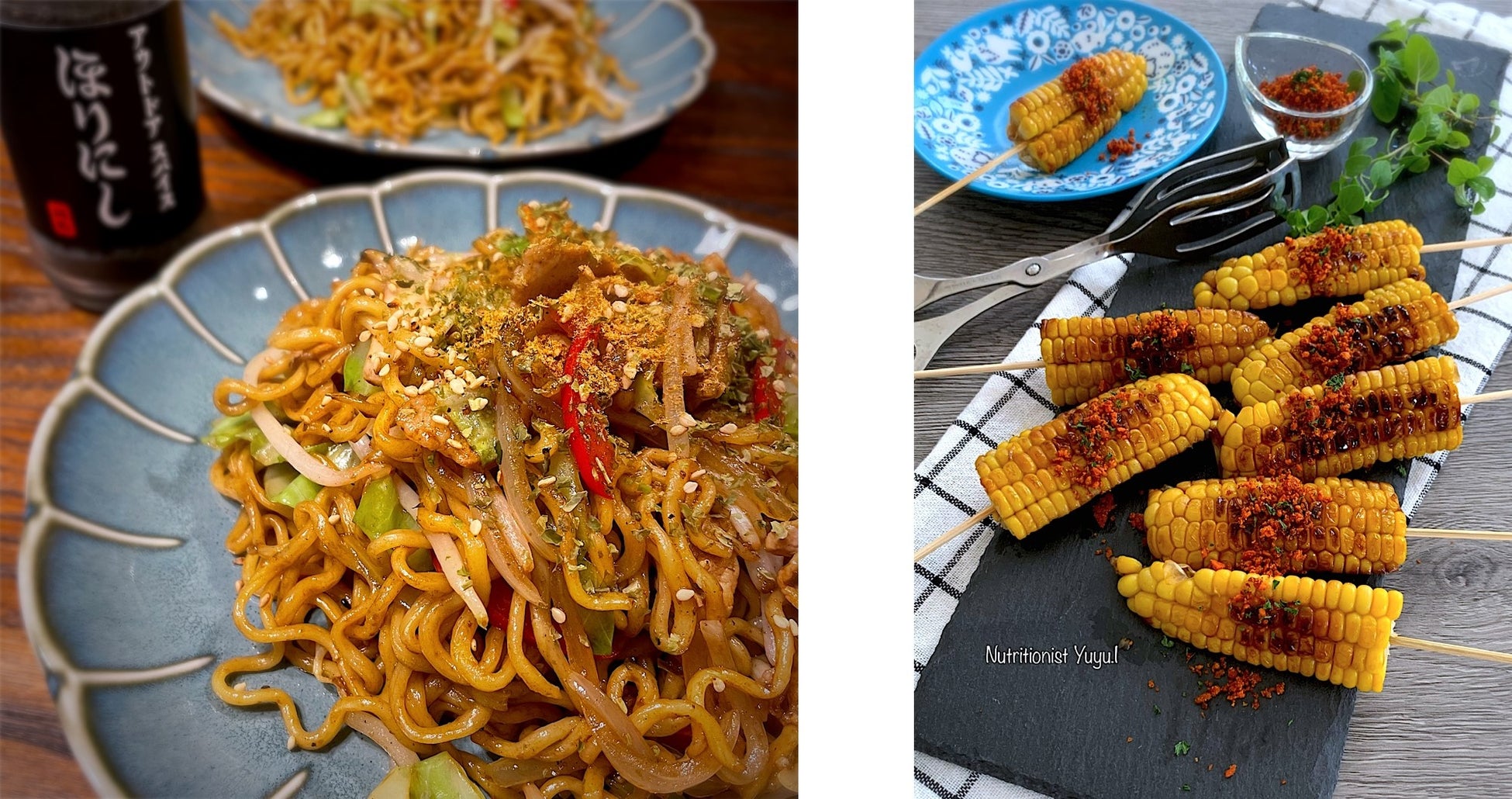 右:フライパン焼きもろこしのスパイスクリスピーがけ(https://snapdish.co/d/4O5iPa)