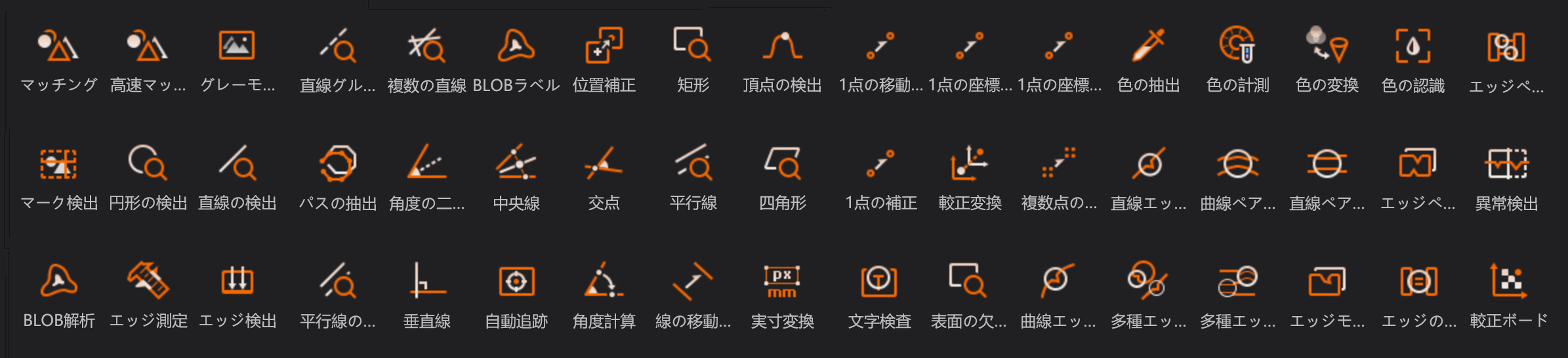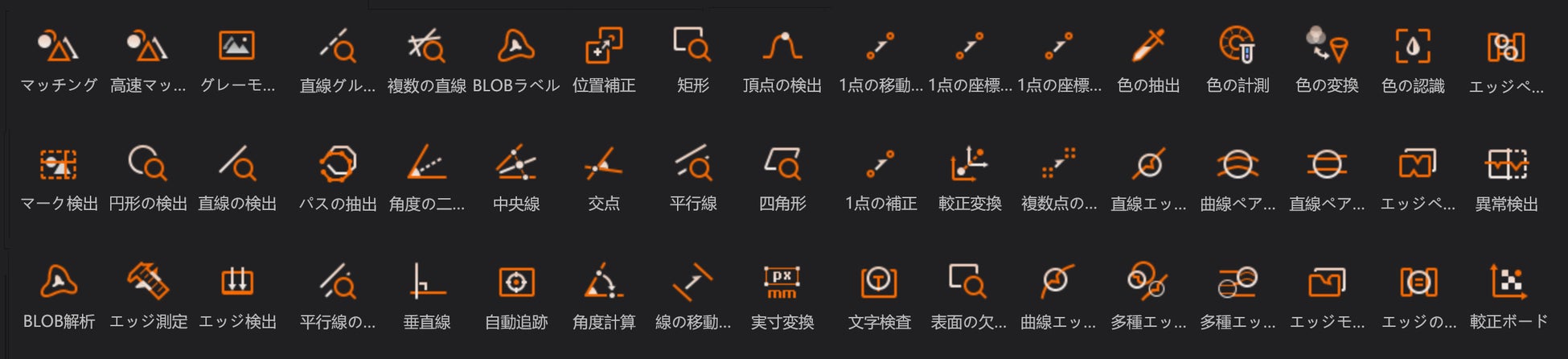 ImageProには、画像フィルター、二値化、モロフォロジ―変換など前処理や後処理で使用する代表的な30種類の画像処理機能が標準実装されています。これにより、ユーザーは手動でプログラミングレベルの画像処理を行うことなく、指定された操作にマウスで従うだけで煩雑な画像処理を完了させることができます。