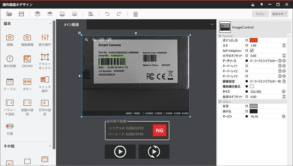 どの箇所に、どのパターンの異常が発生しているか、NGかOKかなどの検証結果を表示する画面は、ユーザーが見やすいレイアウトで表示させる項目や構成をマウス操作で自由に指定して作成することができます。