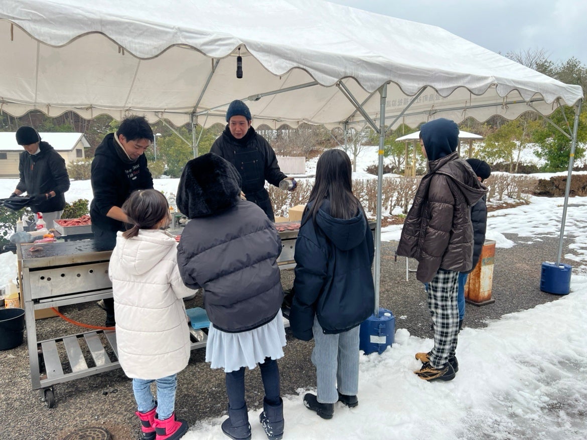 2024年1月26日・27日、KINTANスタッフ総勢8名は、能登半島地震の被災地である石川県七尾市の能登島生涯センターを拠点に、キッチンをお借りし、焼き台を設置、KINTANの黒毛和牛ロース&赤身の焼肉弁当1295食と山梨県丹波山村からの支援物資である飲料水“雲取りのしずく”、田野屋酒販様からの支援物資“FUJIミネラル”、サッポロビール様からの支援物資“熊本茶”を提供いたしました。