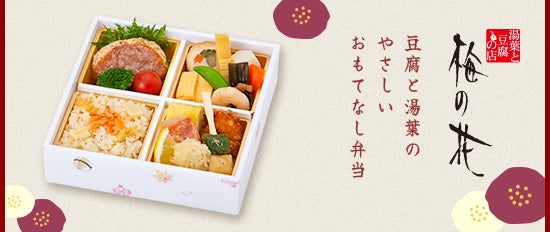 ・梅の花豆腐しゅうまいや長州鶏の湯葉唐揚げと季節の炊き込み御飯のお弁当 1,890円(税込)