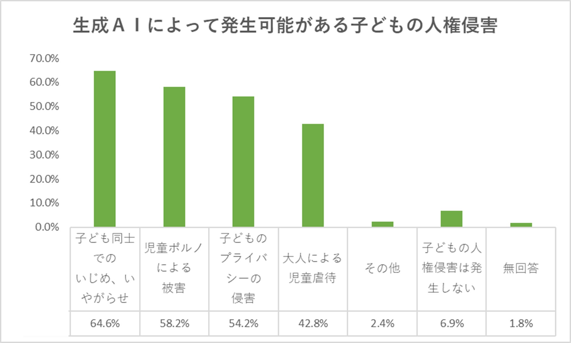 問 生成AIによって、どのような「子どもの人権侵害」が発生する可能性があると思いますか