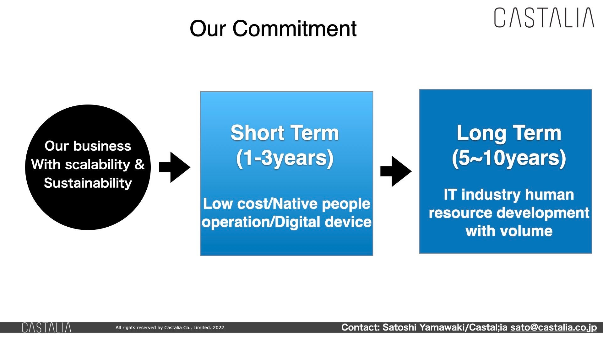 私たちの戦略、それはEDUCATION SCALABILITY ON POPULATION GROWTH(人口増加における教育の拡張性)です。同時にキャスタリアの教育ソリューションはサスティナビリティ(継続性)を実現します。