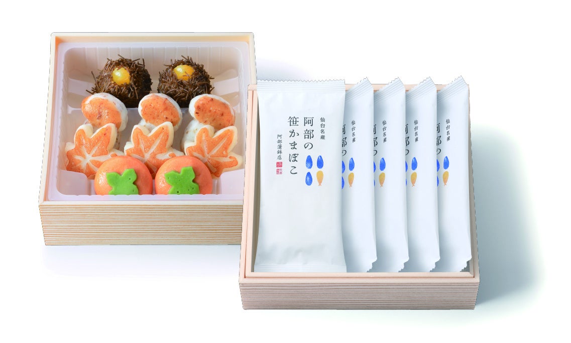 「里の秋」は国家資格である「水産練り製品製造技能士」を持った熟練の職人により一つ一つ丁寧に手づくりされています。すり身は高品質で希少価値の高い上級グレードのみを使用。秋の味覚をモチーフにしたまるで和菓子のようなそのかわいらしさで「こんなかまぼこ見たことない!」と、お客さまから喜びと驚きの声をいただいている阿部蒲鉾店の秋を代表する人気商品です。