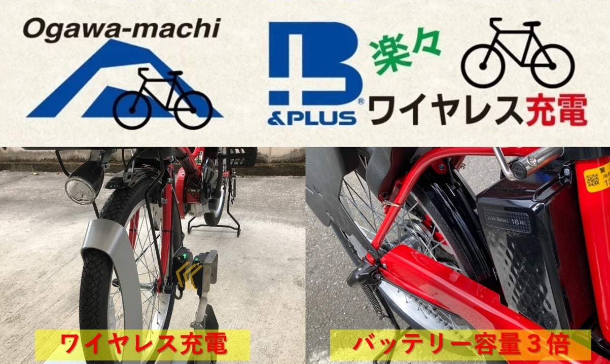 埼玉県小川町では、ワイヤレス充電搭載のドコモバイクシェアの電動アシスト自転車が設置されています。駐輪するだけでワイヤレスで自転車が自動充電されるため、バッテリー管理や予備のバッテリーが不要であり、観光の足、町の足として活用がされていました。しかし、従来の電動アシスト自転車のバッテリーでは、小川町の自然をサイクリングするために少し遠出をするとバッテリー容量が不足することがあり、より容量の大きいバッテリーのシェアサイクルにしてほしいなどたくさんの声がありました。そこで従来の5.3AHのバッテリーから3倍以上の16AHのバッテリーとワイヤレス充電を搭載した電動アシスト自転車を新たに用意し、小川町のシェアサイクルを一斉リニューアルしました。