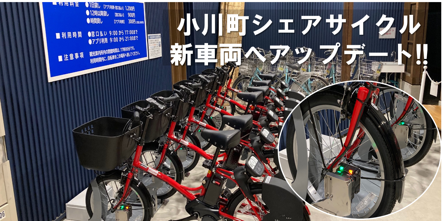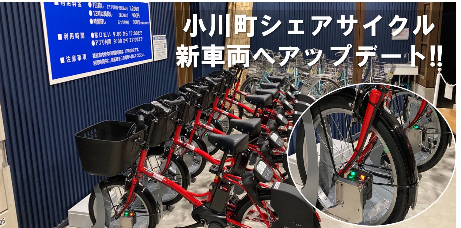 ワイヤレス充電搭載シェアサイクルリニューアル、バッテリー電池容量従来比3倍!自転車も携帯も楽々充電、小川町探索へ出かけよう!