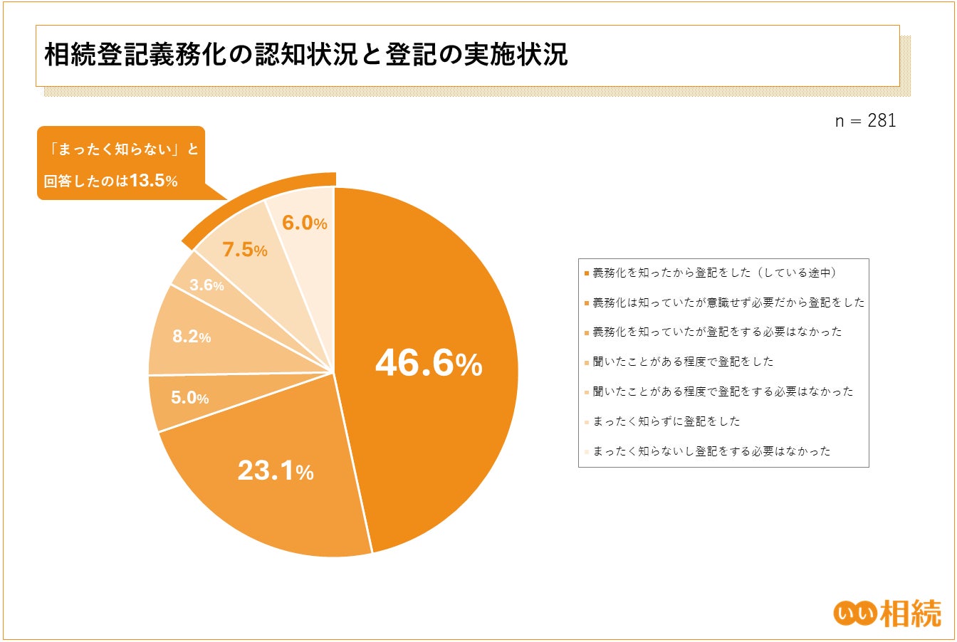 3.【相続登記】 登記義務化が手続きを後押し。「義務化を知ったから登記した」人は46.6%