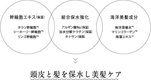 *1 加水分解ウールキューティクルタンパク(保湿)[エイトザタラソ スムースシャンプー、エイトザタラソ スムーストリートメントに配合]/加水分解ケラチン(カシミヤヤギ)(保湿)[エイトザタラソ スムーストリートメント、エイトザタラソ スムースヘアマスクに配合] *2 クリスマムマリチマムカルス培養液(保湿)[エイトザタラソ スムースヘアオイル以外に配合] *3 エリンギウムマリチムムカルス培養液(保湿)[エイトザタラソ スムースシャンプー、エイトザタラソ スムーストリートメントに配合] *4 リンゴ果実培養細胞エキス(保湿) *5 海水(保湿) *6 水溶性コラーゲン(保湿)*7 スサビノリエキス(保湿)[エイトザタラソ スムースヘアオイル以外に配合]/アルゲエキス、ガゴメエキス(全て保湿)[エイトザタラソ スムースシャンプー、エイトザタラソ スムーストリートメントに配合]/オキナワモズクエキス、カラフトコンブエキス(全て保湿)[エイトザタラソ スムースヘアマスクに配合]/ラミナリアオクロロイカエキス(保湿)[エイトザタラソ スムースヘアオイルに配合]