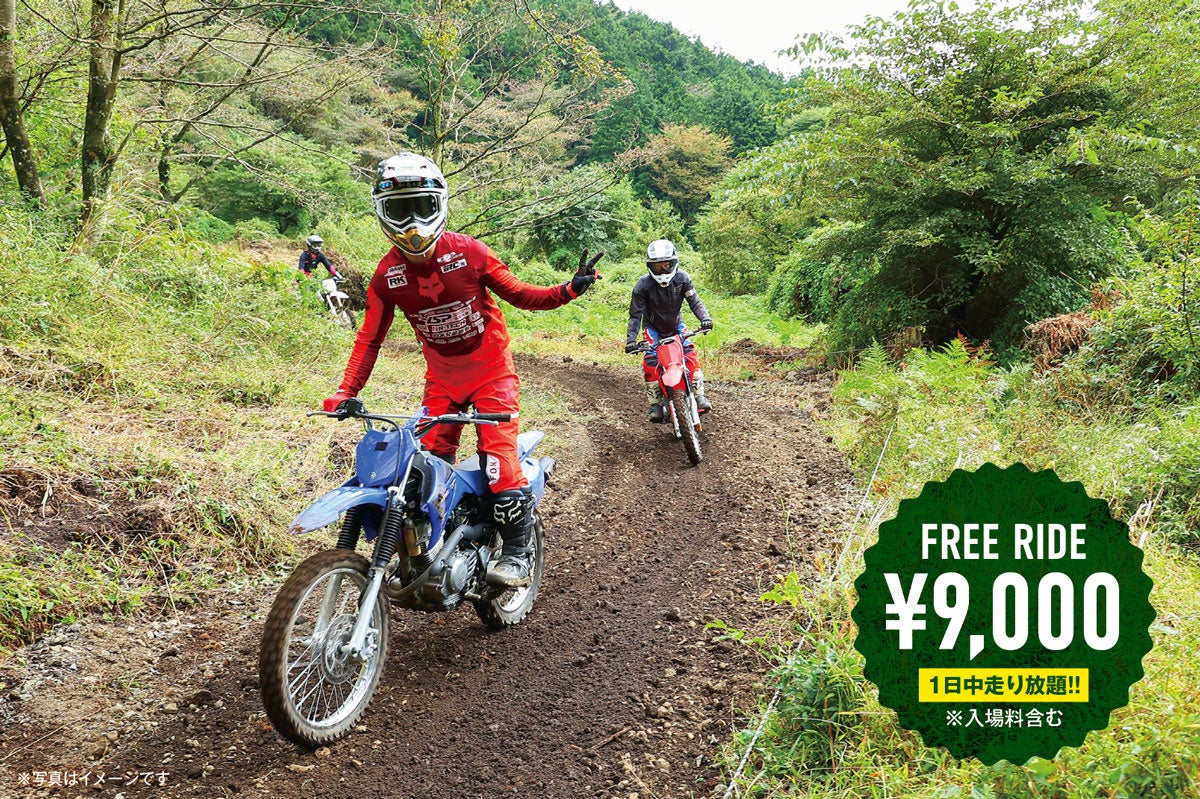 ONTAKEの自然に囲まれたワイドなオフロードコースを、初級〜上級レベル別に自由走行!レースではないので、自分のペースで思いきり走れます。