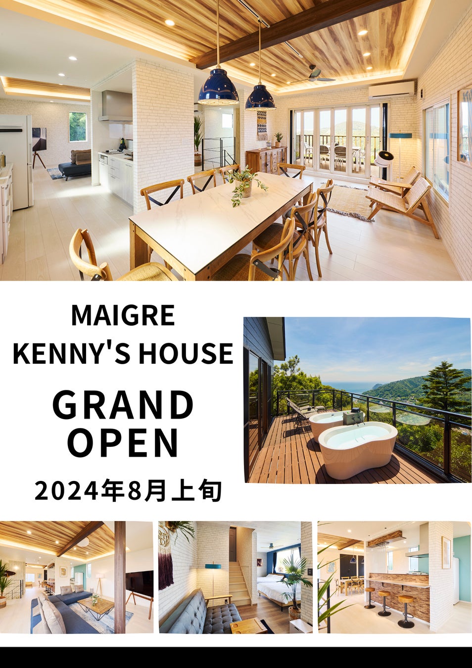 「マイグレケニーズハウス」は、日本有数の温泉地の一つであり静岡県内でもトップの湯量を誇る伊東温泉に位置し、本施設内でも温泉やサウナが楽しめる大型の一棟貸別荘です。カリフォルニアスタイルとリゾート感を融合させたアメリカ西海岸風のインテリアとエクステリアで、随所に心地よい座りを誘うアイテムが配置されており、非日常な体験とともに、ゆったりとくつろげるリラックスした環境も整っています。