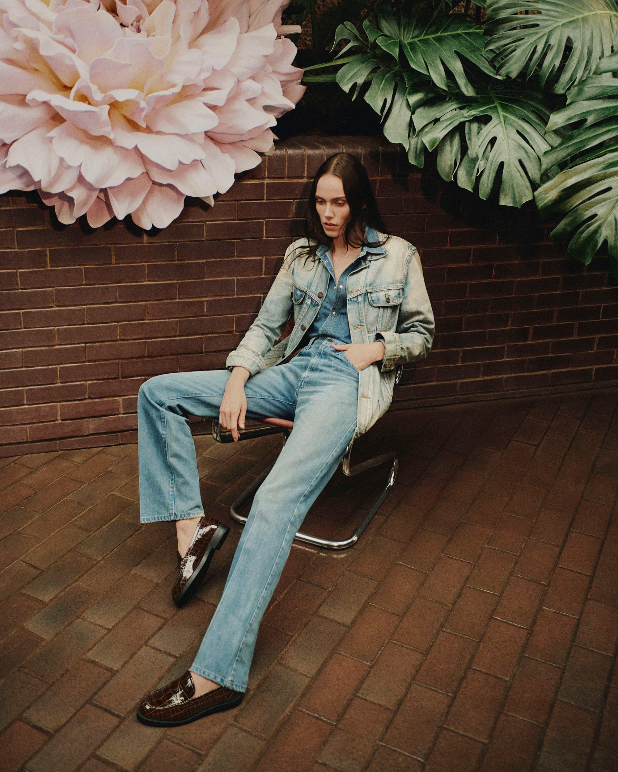 SPRING 2026 キャンペーンで主役を務めるスタイルは、ビスポークのパターンレースで仕立てた「 SUNNY(サニー)」 トレーナー と 「FAIZ(ファイズ)」 パンプス です。フラワーのテーマは、パンチングレースレザーのコサージュで装飾された 「MIMMI (ミミ)」スリングバックによって、さらに深く探求されています。