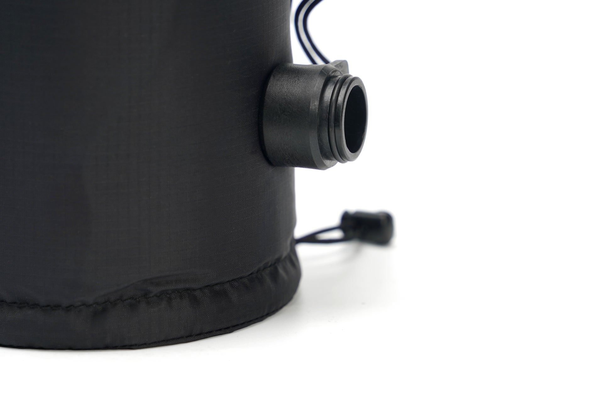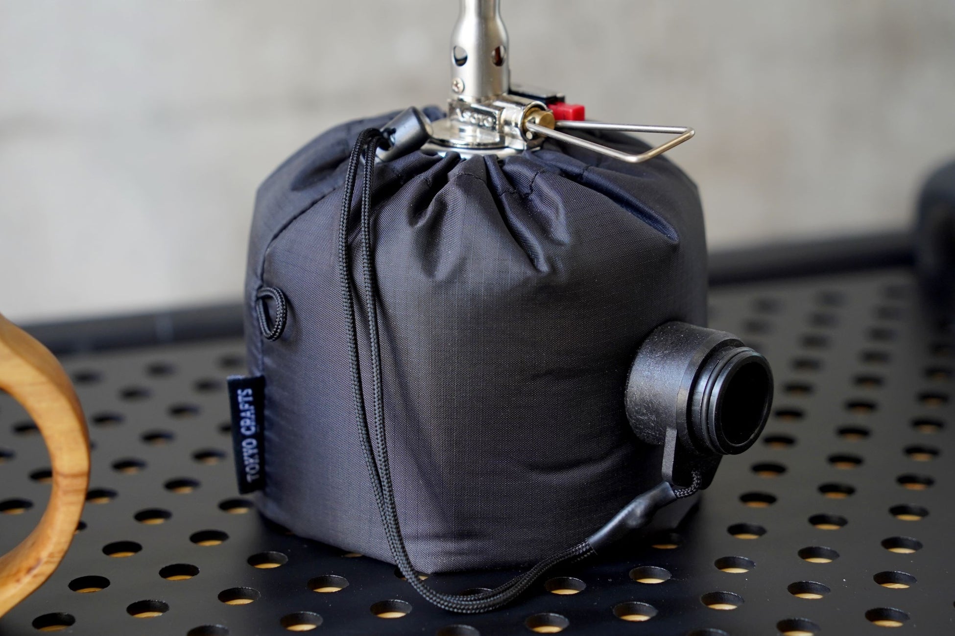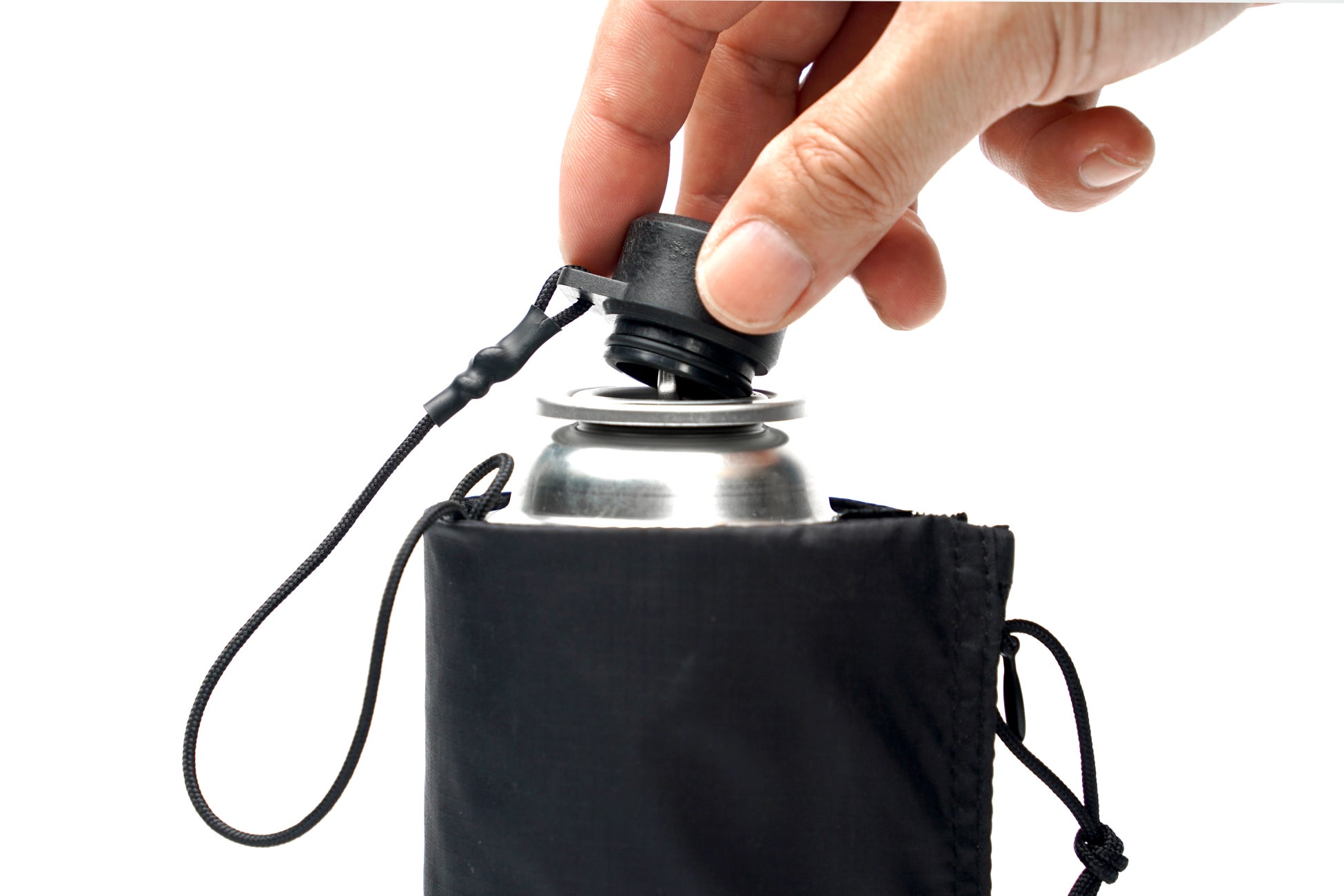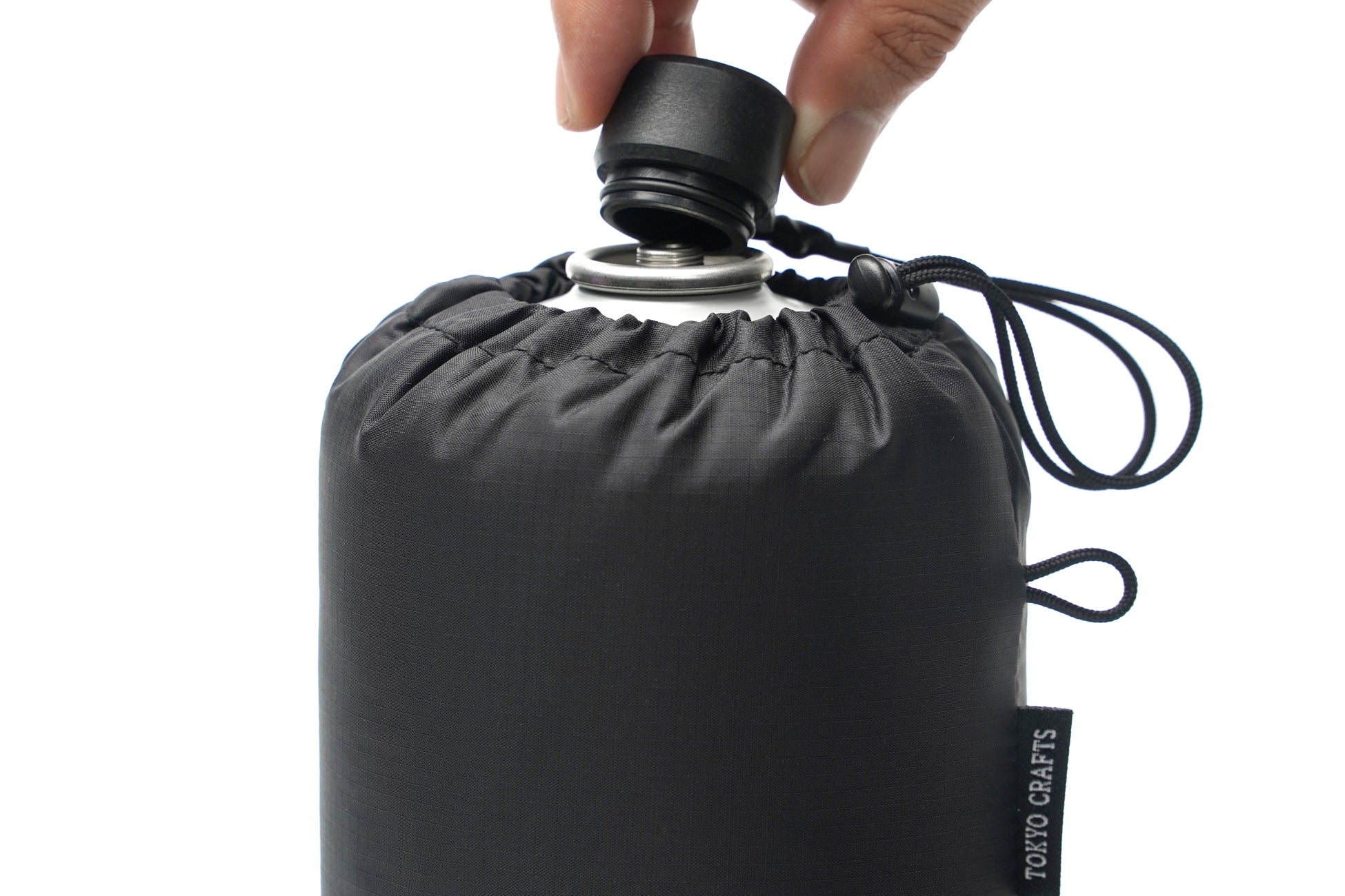 OD缶250と500の2サイズに対応したガス缶カバー。裏地には熱伝導率の低いウレタンフォームを使い、ドレスアップや、運搬時の傷防止に効果的です。どのOD缶にも使用できる専用キャップを紐でカバーに連結させ、さらにマグネット式にすることで、OD缶側の側面に固定することも可能。純正キャップを使用する必要なく、紛失するリスクもありません。