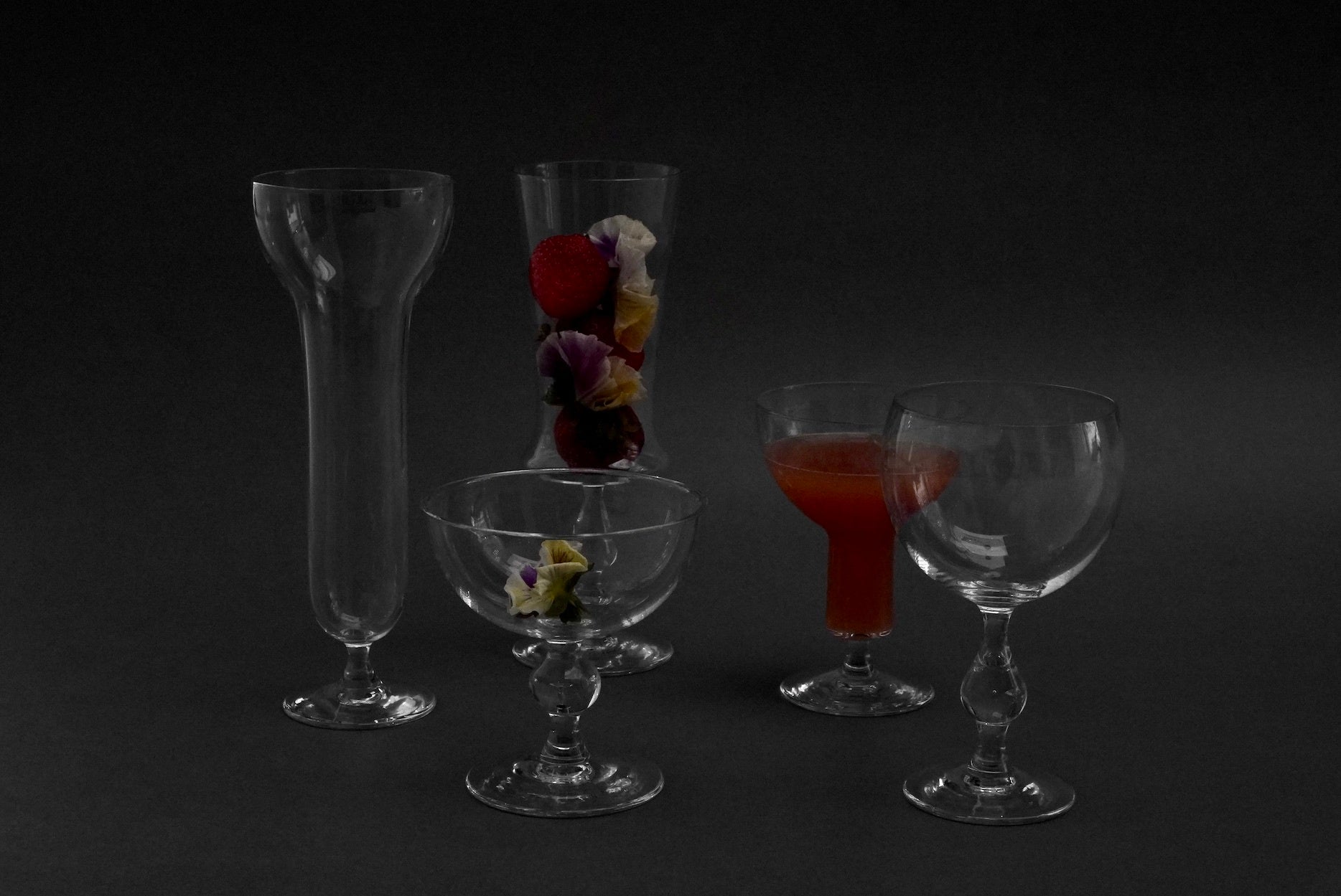他では見られない特徴的なフォルムのグラスは、使うたびに心が躍るような気分に。