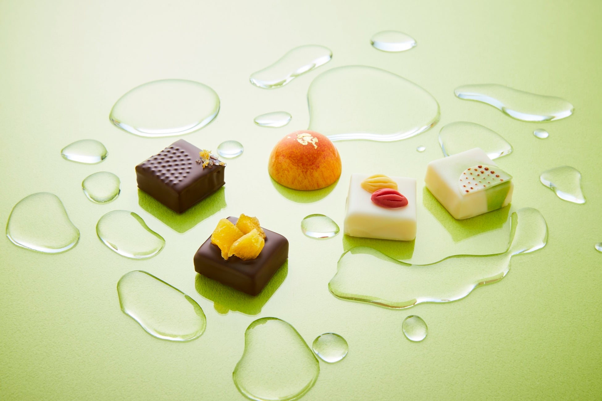 カカオ豆から手掛ける個性豊かな自家製チョコレートを使用し、生搾りレモン果汁の酸味が爽やかなレモンガナッシュと、ザクザク食感のプラリネの組み合わせが心地良いバランスの「レモンガナッシュ×ココナッツプラリネ」や、エクアドル産のカカオ果肉と果汁を使用してガナッシュを作り、白桃ピューレのパートドフリュイと組み合わせた「カカオパルプガナッシュ×桃のパートドフリュイ」など、夏のフルーツを存分に満喫していただけるコレクションに仕上げました。