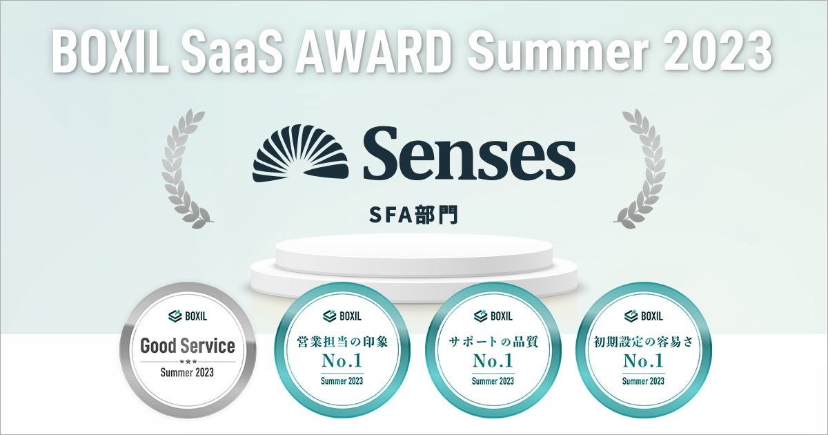 クラウド営業支援ツールSensesが「BOXIL SaaS AWARD Summer 2023」SFA部門で「Good Service」に選出。さらに「サポートの品質No.1」含む3つのNo.1も受賞