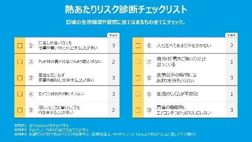 ※ 熱あたりリスク診断チェックリストは、東京理科大学の仲吉信人教授にも監修いただいています。