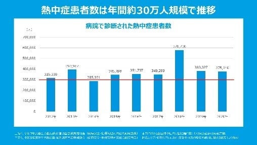 谷口先生:一般的に知られてはいませんが、毎年30万人以上が「熱中症」になっています。「熱中症」は医療機関で診断される病名なので、医療機関で診断されていない人は含まれません。暑さで体調が悪くても病院に行かなかったという人は多いでしょう。実は、医療現場では以前から、熱の影響で体調不良を起こしても病院には行かない「潜在的な体調不良者」がたくさんいると推測していました。その「潜在的な体調不良者」の規模が把握できていないことは、熱中症を取り巻く課題のひとつでした。