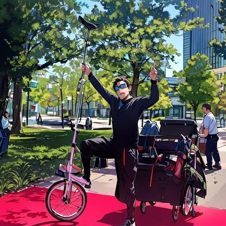 たとえば3メートル以上ある一輪車の上で、流暢だけれどちょっと可笑しな日本語と笑いに満ちたトークを展開しながらの驚くべきジャグリングの数々は必見!!