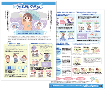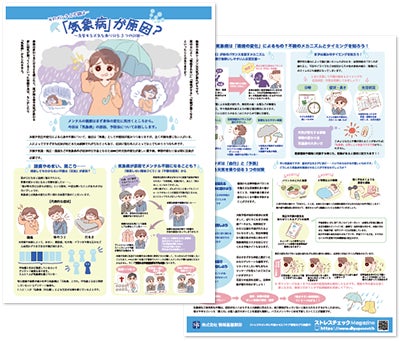 「ストレスチェックマガジン」の掲載記事では、「気象病」を引き起こすメカニズムの詳しい内容や3つの対策などを詳しく解説しています。また、人事・労務ご担当者の方々に向けて、プリントアウトして社内掲示や配布資料にご活用いただけるPDF資料を用意し、記事内のダウンロードフォームから入手できるいたしました。