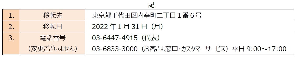 東京都千代田区内幸町二丁目1番6号(2022年1月31日より)