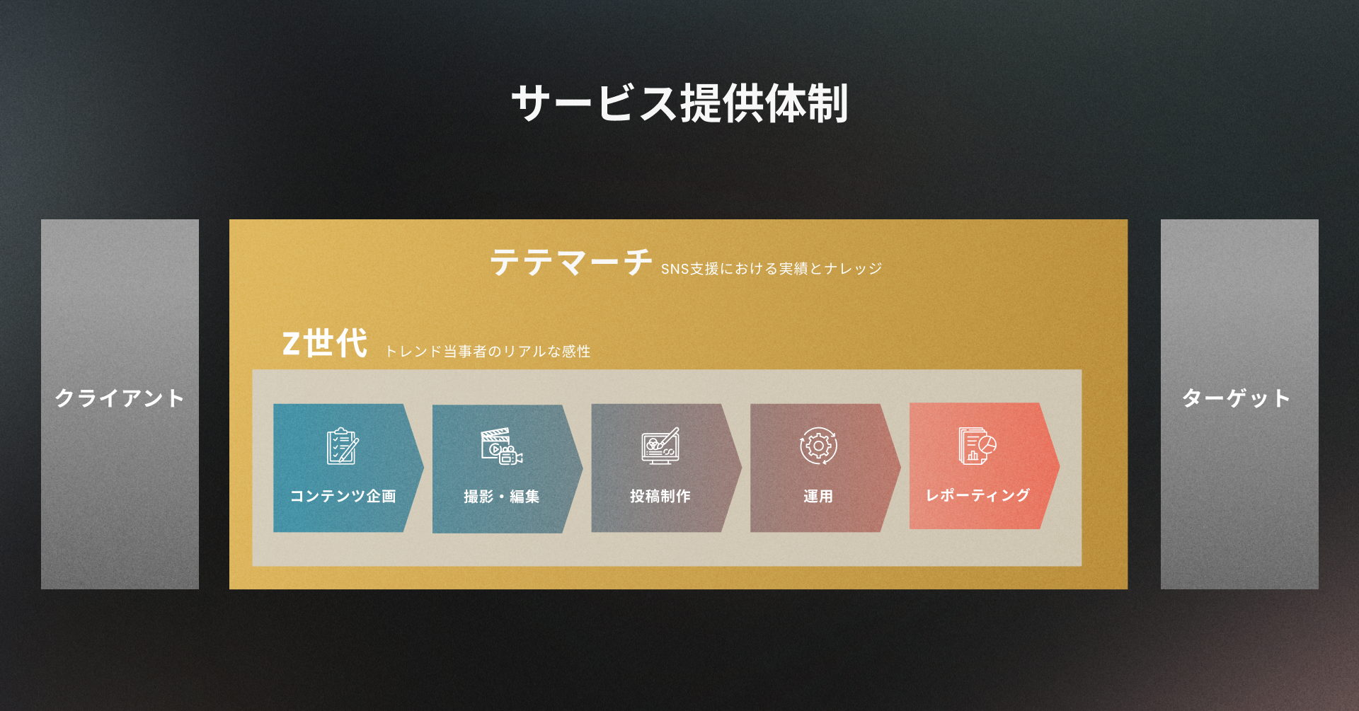 当社の『TikTok』企業支援の特徴は、TikTokネイティブであるZ世代を中心とした運用体制です。