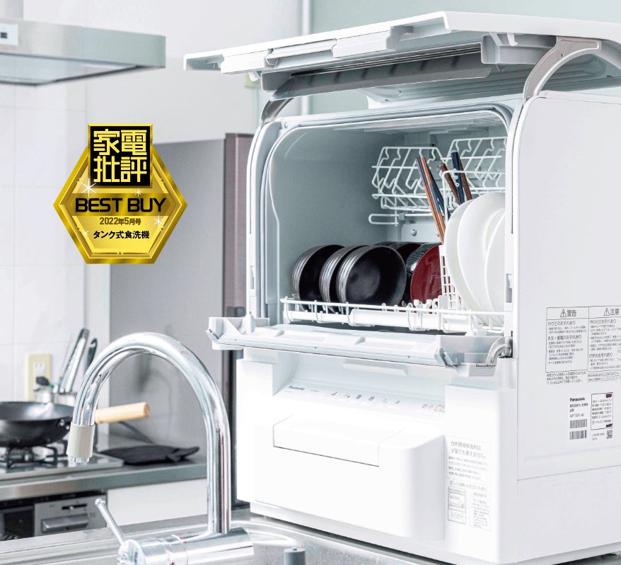 幅60cm、奥行34.1cmと水切りラックぐらいの大きさなのが最大の特徴。ドアを開けても高さ61.2cmなので、造り付けの棚が上方にあるシンクにも設置しやすいです。給水もしやすく庫内の手入れも簡単で、子育て世帯には心強い味方になってくれること間違いありません。