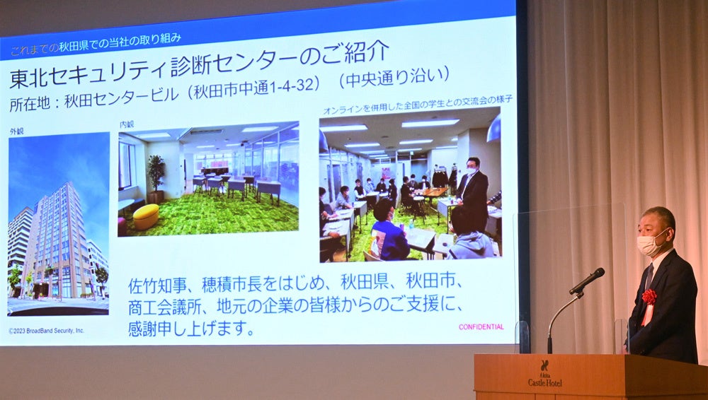 BBSecは、2018年より秋田県において、セキュリティ人材の育成、雇用の創出を通じた社会貢献と地方創生を軸に、講師を派遣してセキュリティ人材の育成に携わってまいりました。また、秋田県より「情報関連産業立地促進事業対象企業」として指定を受け、2021年9月1日に、高度ITセキュリティエンジニアを中心に構成するオフィス「東北セキュリティ診断センター」を開所し、育成したセキュリティ人材雇用の受け皿としての役割を担ってまいりました。