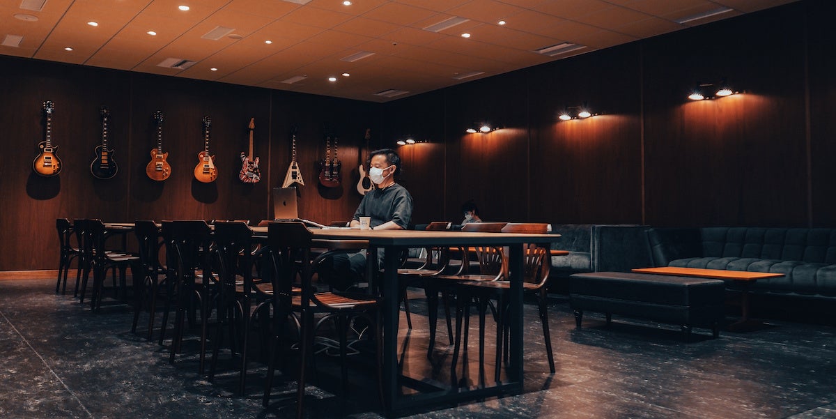 来客用の会議室は計7部屋。全室モニター完備。名称はアルファベットのA〜Gの頭文字から始まる世界的ロックミュージシャンに由来し、A:Axl Rose(Guns N’ Roses)、B:Bowie(David Bowie)、C:Chester Bennington(LINKIN PARK)、D:Dave Grohl(Foo Fighters)、E:Eddie Van Halen(Van Halen)、F:Freddie Mercury(QUEEN)、G:Gene Simmons(KISS)となっています。