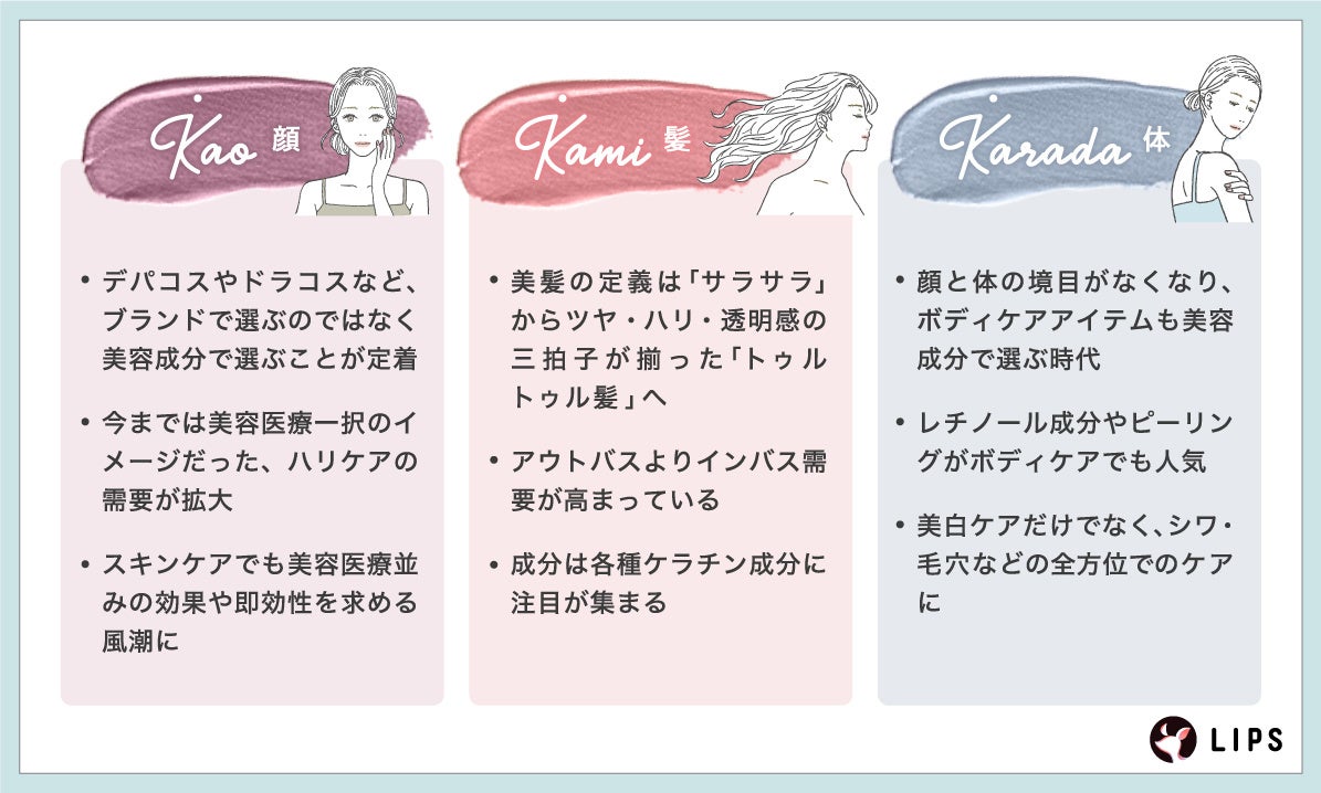 【LIPS labo】"K3ケアに新潮流"LIPSユーザーのリアルな声から観た、"顔・髪・体"ケアの現在地