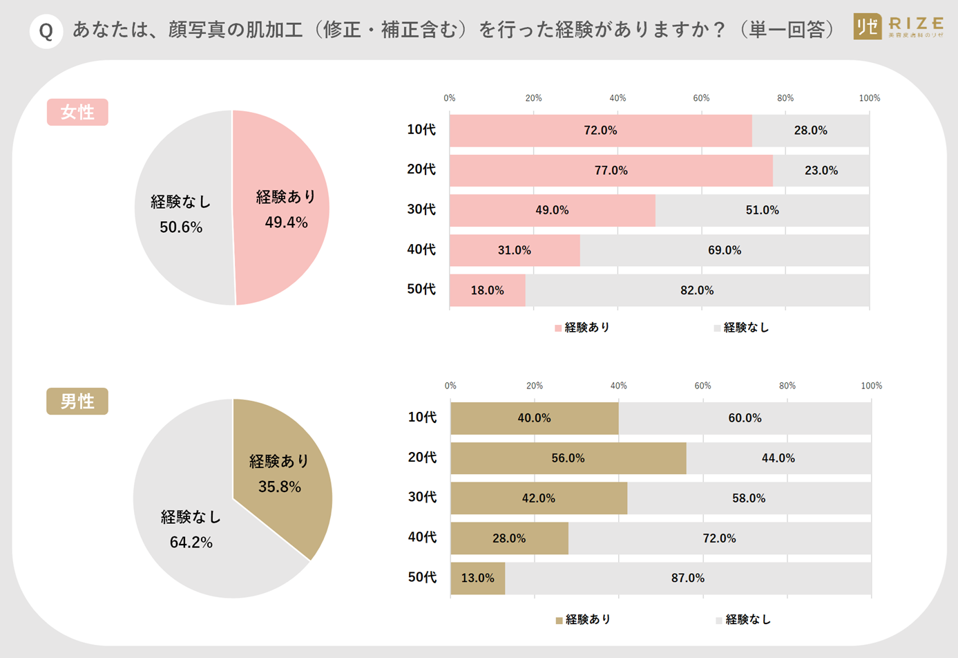 女性の半数(49.4%)、男性の4割(35.8%)が「経験がある」と回答。