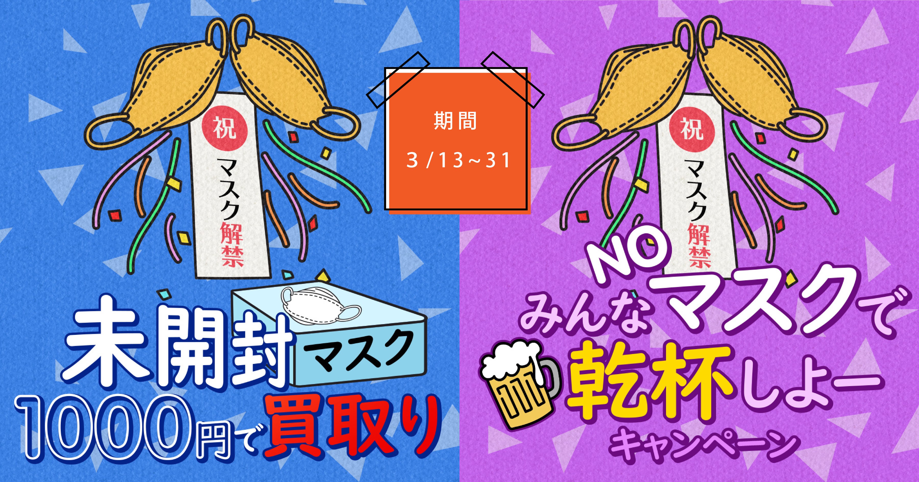 3年間悩まされた・・やっとこの息苦しさから解放されます!みんなで喜びを分かち合おう!え!待って!!マスクの在庫めっちゃあるんだけと・・。そんな方に朗報です!マスク買取ります!乾杯しよ!お祝いしよー!
