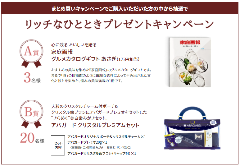 【特典】まとめ買い対象商品をご購入いただいた方の中から抽選で、リッチなひとときを味わえる賞品をプレゼント。