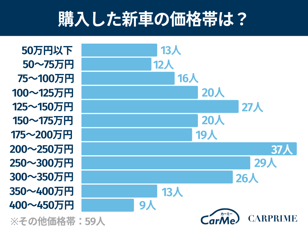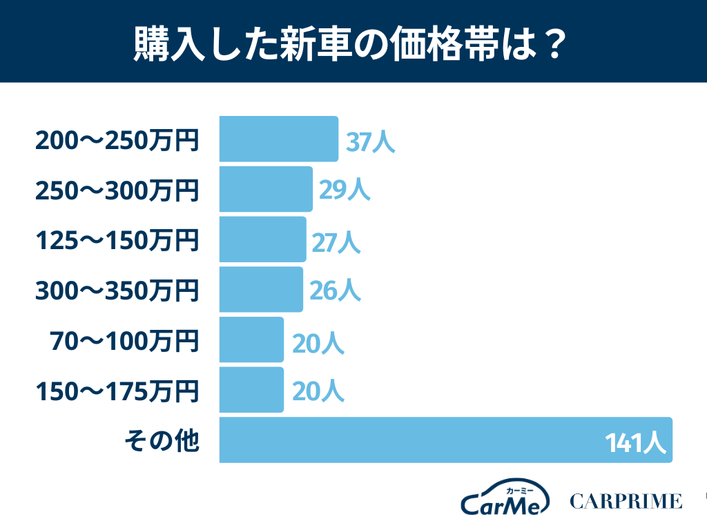 この2つを合わせた200〜300万円の範囲が新車の購入価格として一番多いボリュームゾーンのようです。