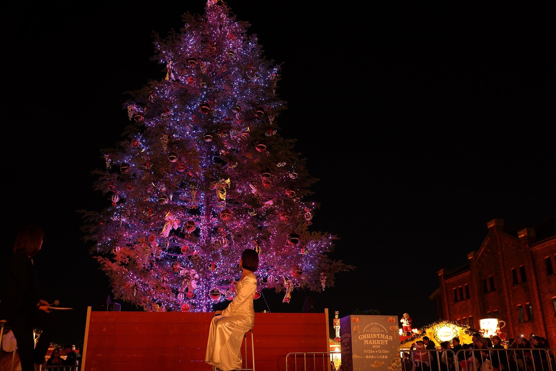 〜「Christmas Market in 横浜赤レンガ倉庫」 点灯式イベントレポート〜 横浜出身・神田愛花さんが純白のドレス姿で赤レンガ倉庫の巨大ツリーを点灯!
