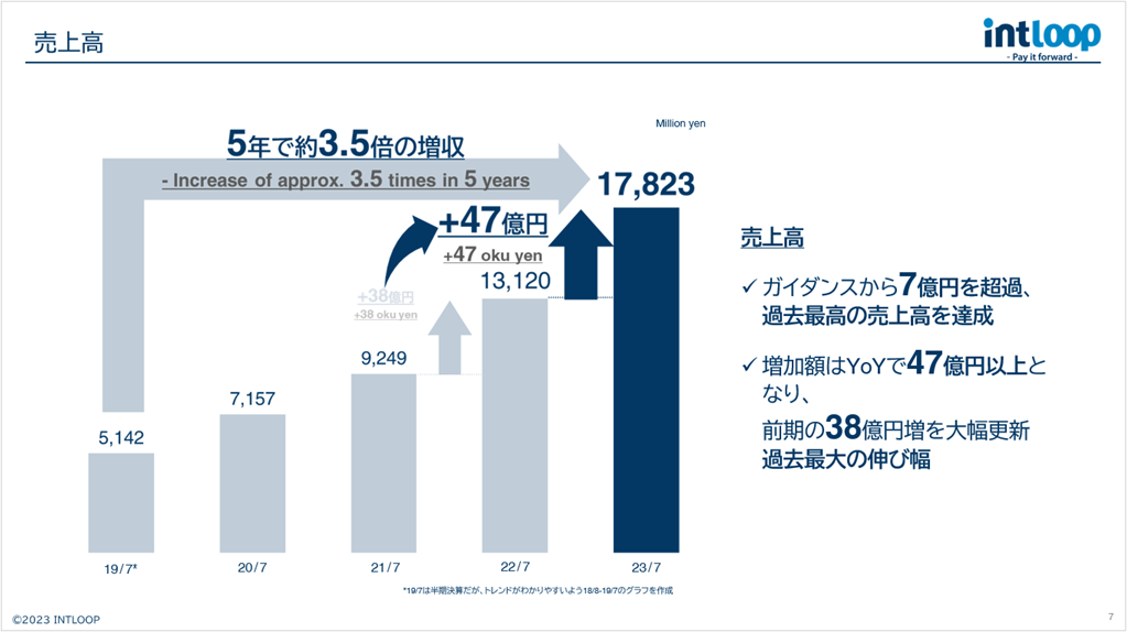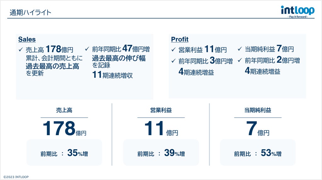 イントループ 2023年7月期通期決算を発表前期比で売上+35.8%、営業利益+39.4%と売上高・利益共に過去最高を記録