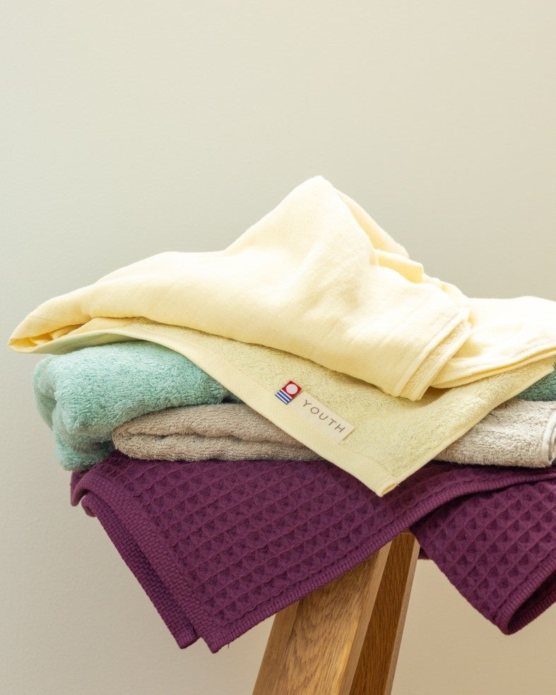 ふんわりと軽やかで、やわらかな肌触りのガーゼパイルタイプ。乾きも早く、たたむとコンパクトになる使いやすいタオル