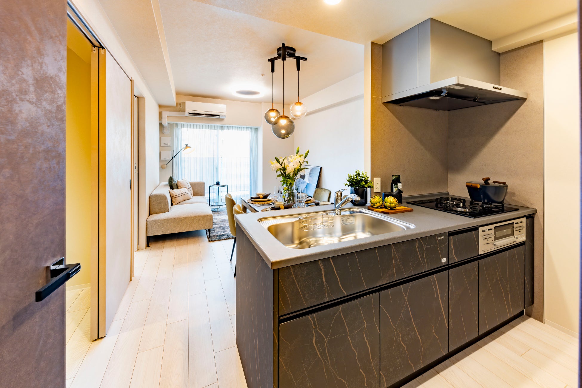 本物件では、大阪市西区新町エリアでは数少ない40㎡台1LDK+S・50㎡台2LDKといった希少性の高い間取りをご用意しています。幅広で人気の対面キッチンや、シューズインクローゼット(SIC)・ウォークインクローゼット(WIC)を全住戸に設えることで、単身でゆとりある暮らしを求める方から、二人暮らしや将来を見据えたDINKS層まで、幅広いライフスタイルに応える柔軟で暮らしやすい住空間を実現しました。