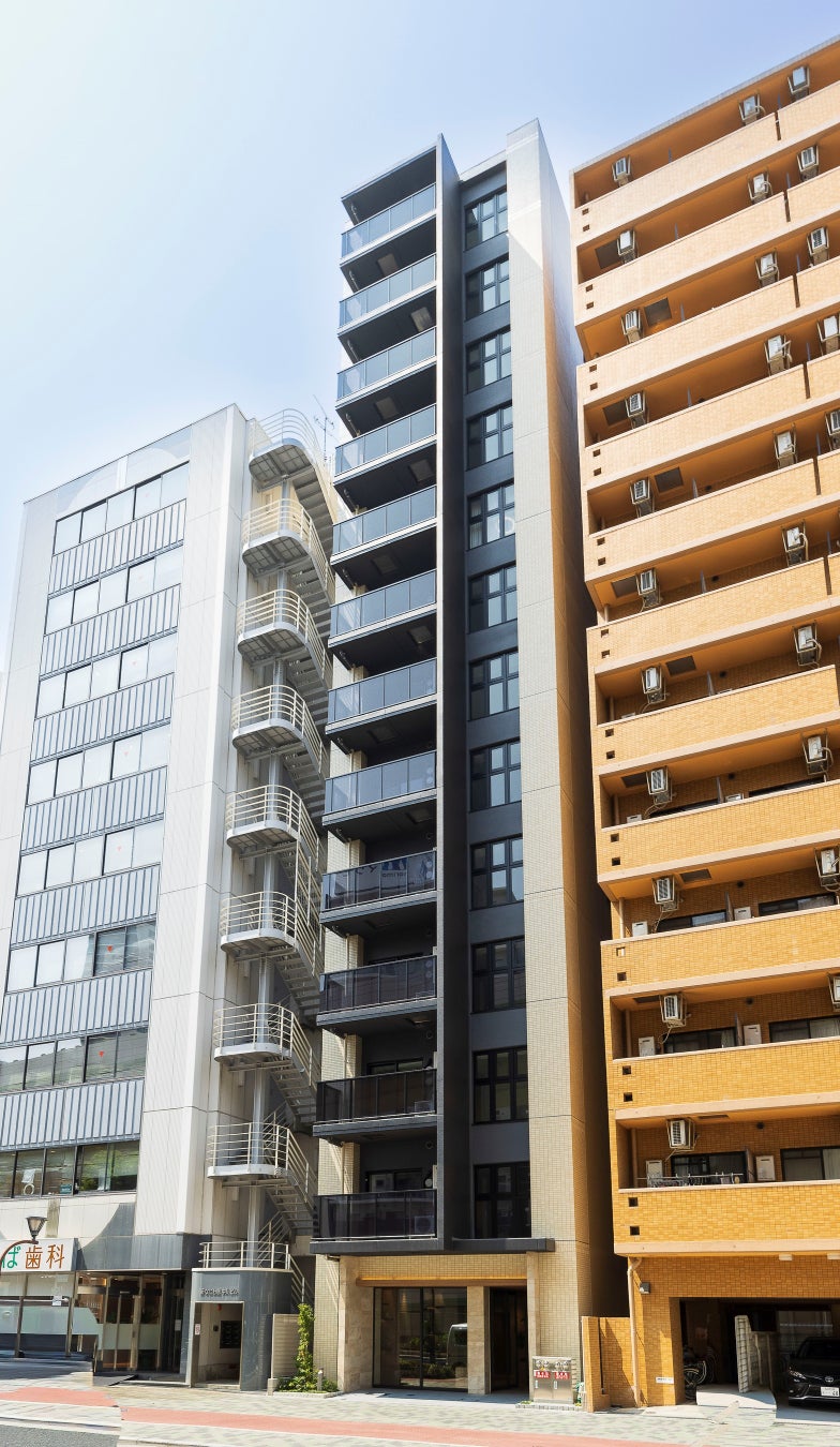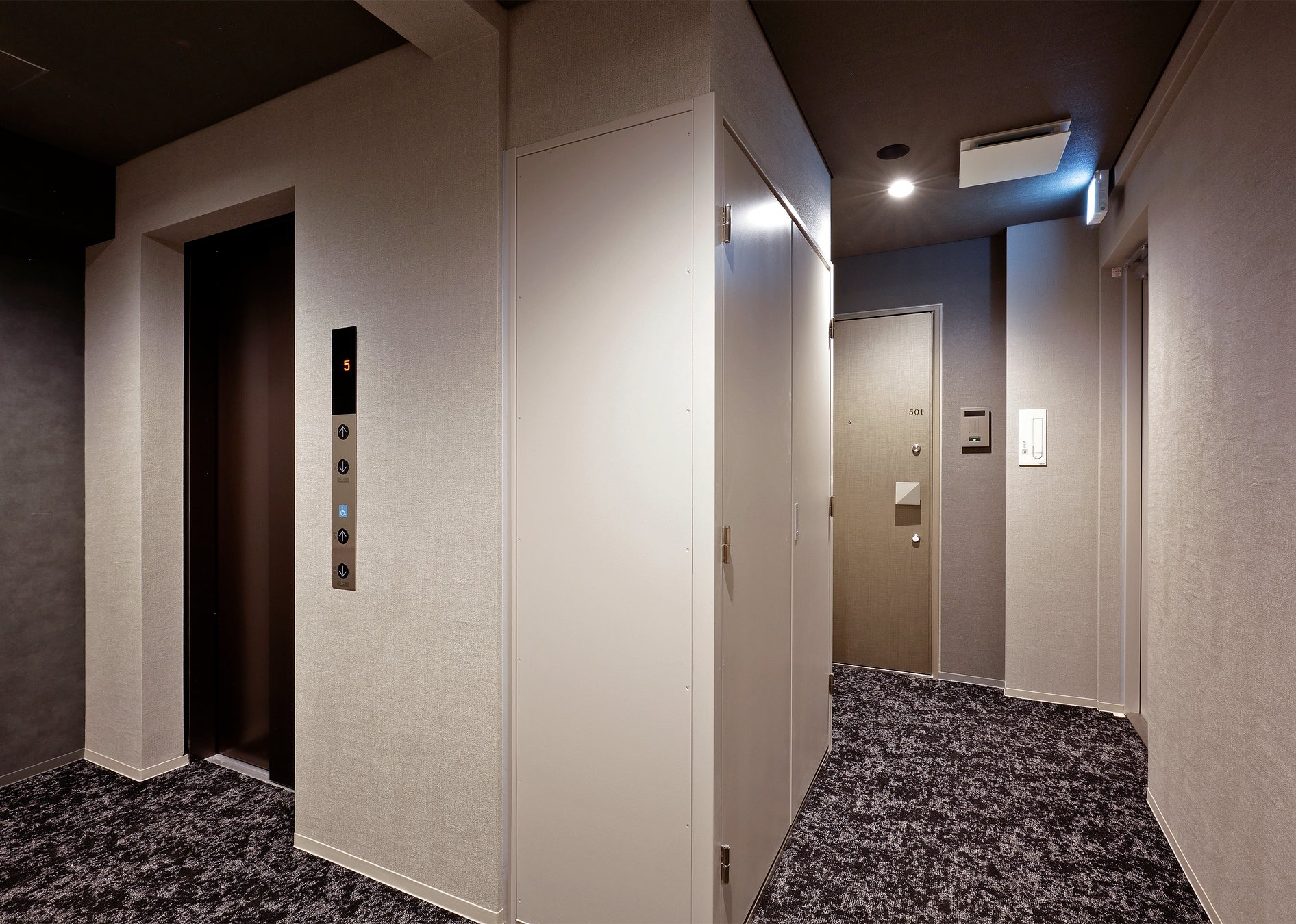 本物件は周辺賃貸レジデンスでは希少な内廊下設計で、住戸の出入りは天候にも左右されません。各フロアは2住戸でプライバシー性の高い全室角部屋です。