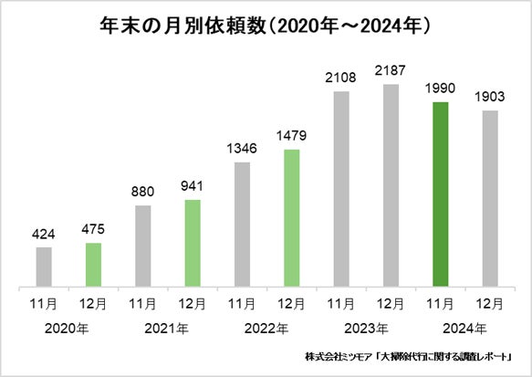 ・早め大掃除が新定番?2024年の年末の依頼ピークは「11月」 2023年以前は「12月」がピークという結果に