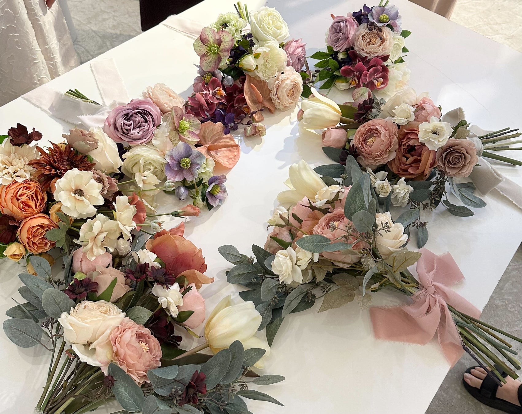 同じ花材でもそれぞれ雰囲気が違うねと花嫁同士で話しながら、世界に一つだけのブーケが出来上がりました。