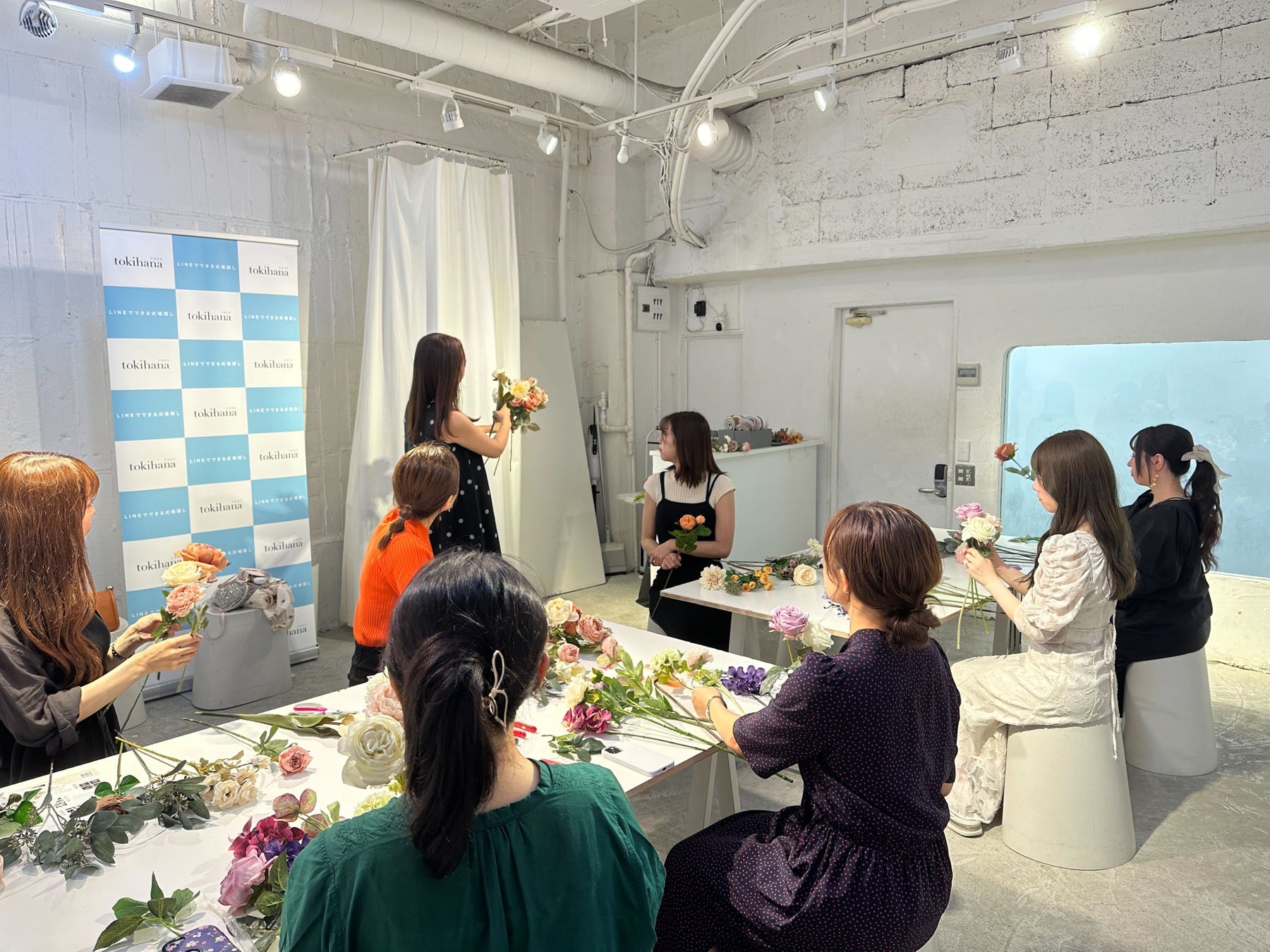 LINEでできる式場探し『トキハナ(https://tokihana.net/)』を運営する株式会社トキハナ(本社:東京都港区、代表取締役社長:安藤 正樹、以下「トキハナ」は、ウエディングの各界を代表するトップアーティストとコラボレーションし、花嫁の結婚式準備をサポートする「花嫁準備プログラム」を定期開催しています。7/7(日)の第5弾では、ARCH DAYS編集長 井上絢香さんによる「アーティフィシャルフラワーブーケDIY体験」を開催しました。