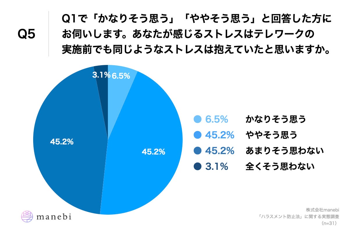 - 過半数が「テレワークの実施前も同じストレスを抱えていた」と回答